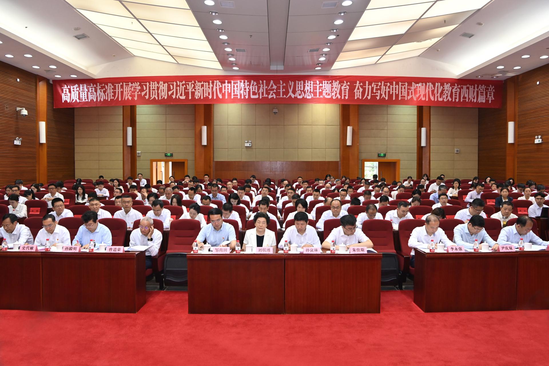 赵德武强调,要提高政治站位,深刻认识开展主题教育的重大意义。深刻认识开展主题教育是统一全党思想意志行动、始终保持党的强大凝聚力战斗力的必然要求,是推动全党积极担当作为、不断开创事业发展新局面的必然要求,是深入推进全面从严治党、以党的自我革命引领社会革命的必然要求,是落实党的二十大关于科教兴国战略部署、加快建设教育强国的必然要求,是学校以“新财经”战略升级引领高等财经教育创新发展、加快建设财经特色鲜明的世界一流大学的必然要求,切实增强思想自觉、政治自觉、行动自觉,把习近平新时代中国特色社会主义思想转化为坚定理想、锤炼党性和指导实践、推动工作的强大力量。