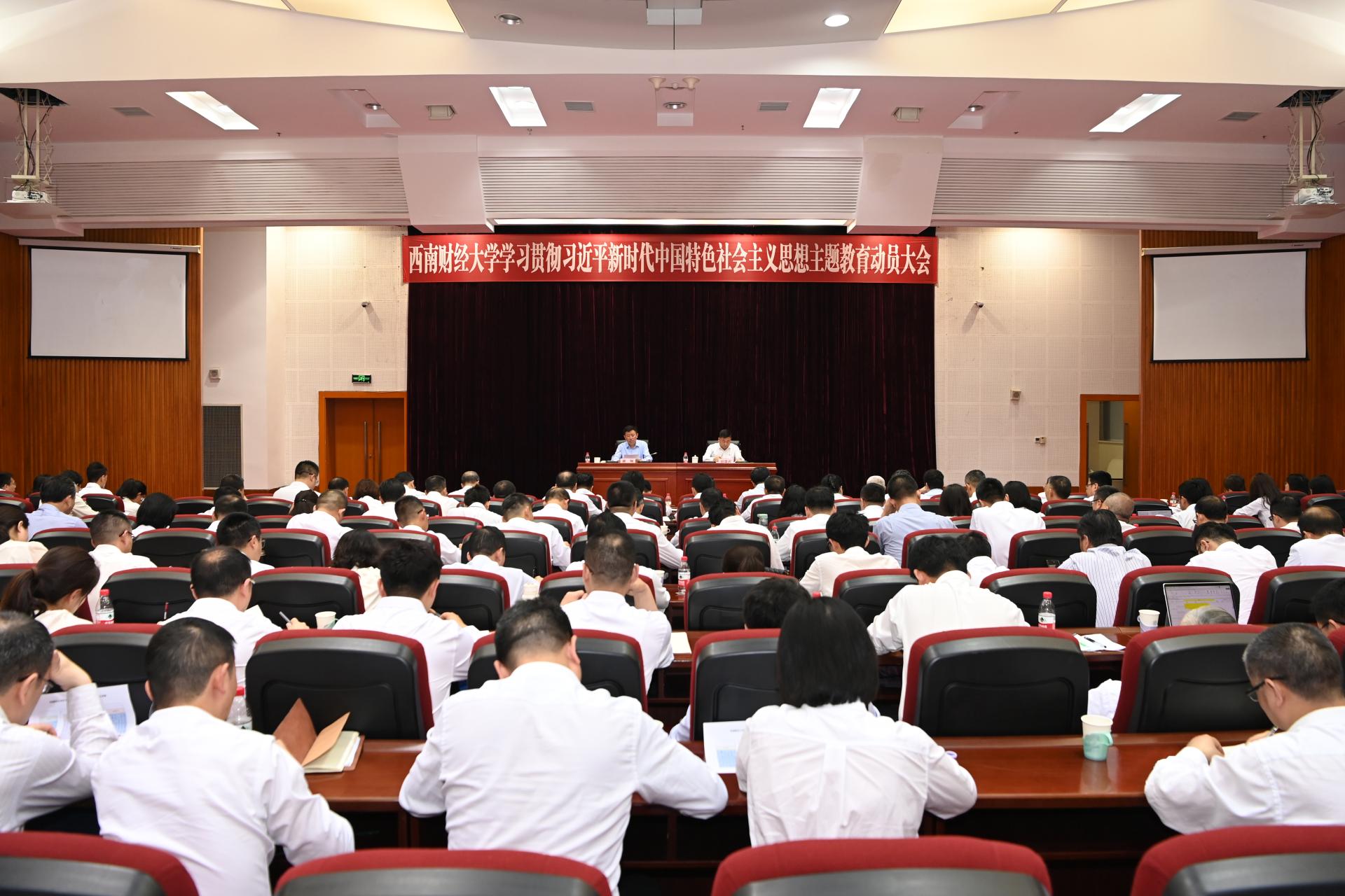 4月19日,西南财经大学召开学习贯彻习近平新时代中国特色社会主义思想主题教育动员大会。学校党委书记、主题教育领导小组组长赵德武主持会议并作动员讲话。教育部直属高校主题教育第十巡回指导组参加会议,组长郝翔讲话。学校领导班子成员、近期退出领导岗位的校领导、机关职能部门和学院(研究院)主要负责同志、特聘组织员、师生党员代表、学校主题教育领导小组办公室工作人员等参加会议。